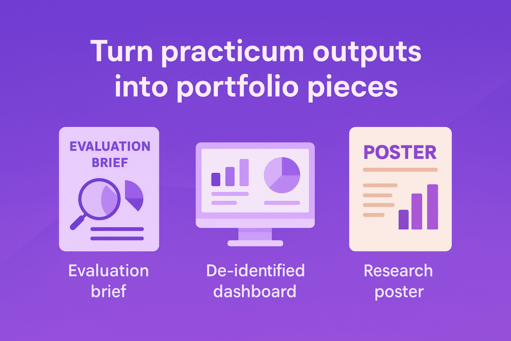 • Bundle outputs so practicum charts feed the capstone.